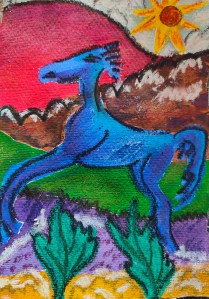 Inspired by Der Blaue Reite movement and Kandinsky and Marke in particular, and thinking about DH Lawrence’s short story St Mawr which features a massive stallion, and which he wrote while living in Pontesbury.