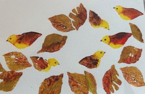 Leaf-printing and then transforming into Birds and Animals